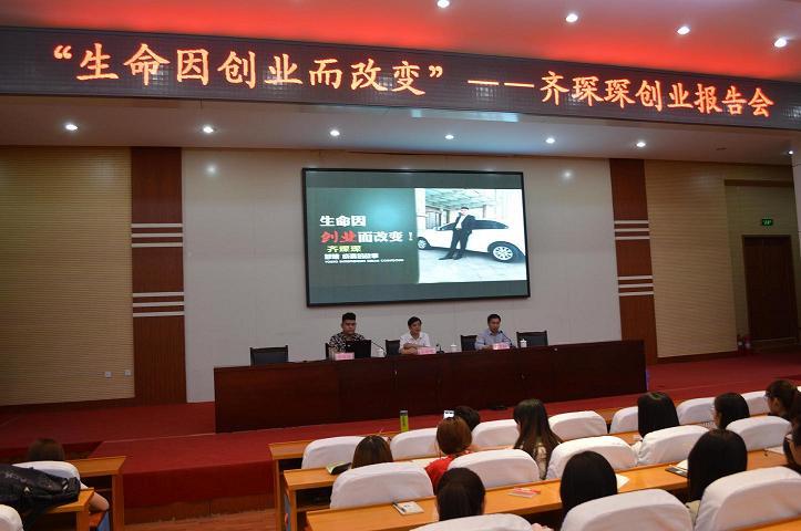 为进一步鼓励大学生创业热情,介绍并分享创业成功经验和感悟,我院大学生创新创业教育中心邀请到了我院优秀毕业生、成功创业典型齐琛琛于5月24日在学院报告厅成功举办了名为“生命因创业而改变”的创业专题报告会,我院副院长王金明为齐琛琛颁发了潍坊工程职业学院大学生创业导师聘书,报告会由我院大学生创新创业教育中心负责同志主持,来自11个院系的学生代表到场聆听。