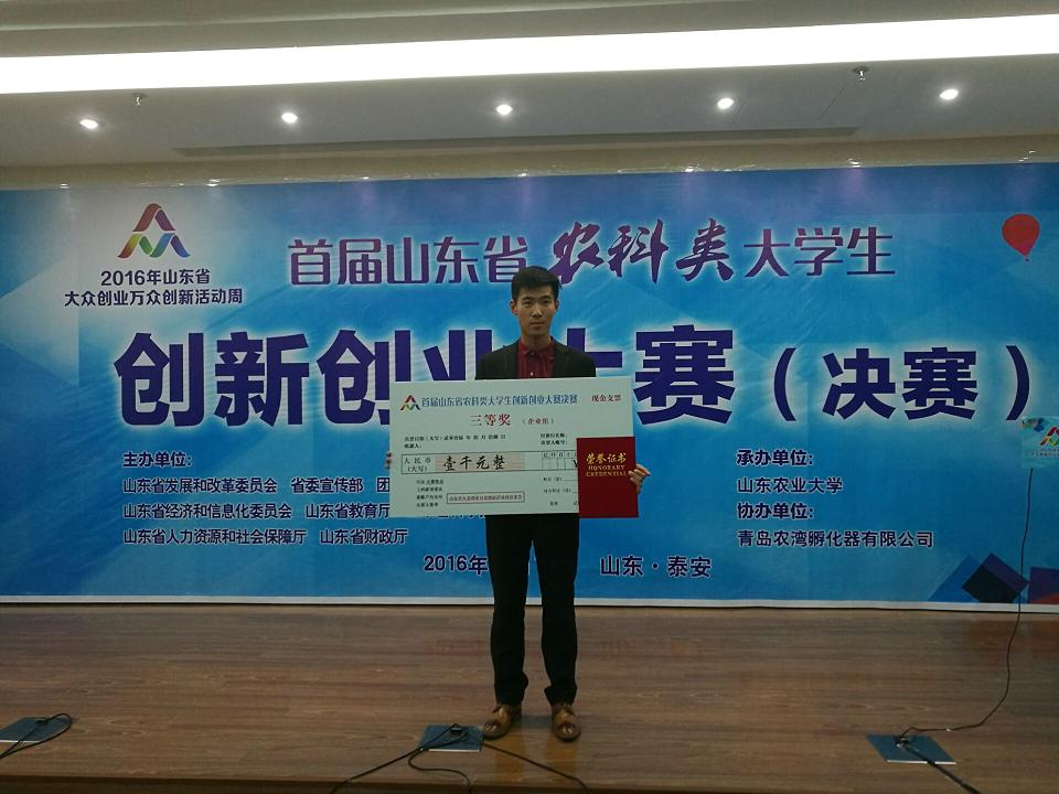 10月18日,首届山东省农科类大学生创新创业大赛决赛在山东农业大学举办,我院参赛项目“潍坊欣升荟食品有限公司”荣获企业组三等奖。本项赛事作为2016年山东省大众创业万众创新活动周专题活动之一,由山东省发改委、省委宣传部、团省委、山东省科学技术协会、山东省经济和信息化委员会、山东省教育厅、山东省科学技术厅、山东省人力资源和社会保障厅、山东省财政厅联合主办,山东农业大学承办。全省13所高校的92个项目入围复赛,经过复赛评审,最终有30个项目进入决赛,具体分为团队组和企业组两个组。大赛聘请了教育部大学生互联网+创新创业大赛国赛评委张伟民、张健君等7名专家担任评审,采用“5+5”模式,即选手结合PPT现场展示进行5分钟陈述项目+5分钟现场答辩,现场公布成绩,团队组和企业组分别设一等奖1项、二等奖2项、三等奖5项。我院由信息工程系推荐,大学生创新创业教育中心教师刘攀、刘万韬具体指导,以2015级测绘与地理信息专业学生蒋景升为团队负责人的“潍坊欣升荟食品有限公司”项目最终晋级决赛,是晋级企业组决赛的唯一的高职院校项目,并最终获得企业组三等奖的好成绩,展示了我院大学生的创业风采,展现了我院大学生创新创业教育的成果。