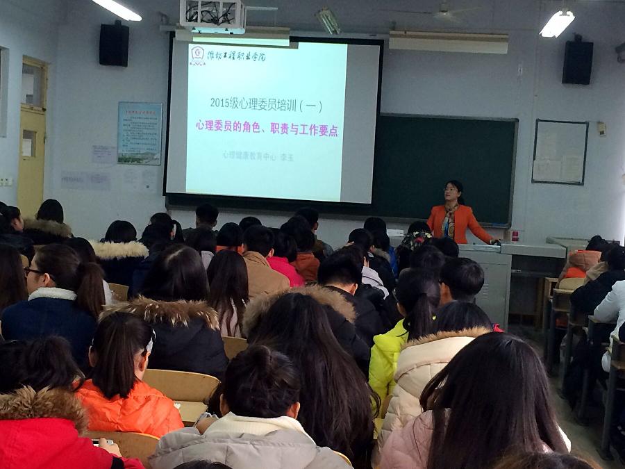 为提高我院大学生的心理健康意识,促进心理健康教育工作的开展,12月10日,基础教学部心理健康教育中心教师李玉在第三教学楼503教室作“心理委员的角色、职责与工作要点”的报告,南校区2015级各班心理委员参加培训。