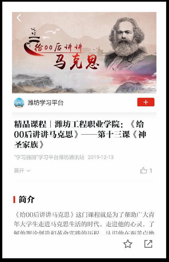 近日,我院基础教学部思政课教师姬莹等精心制作的《给00后讲讲马克思》在线开放课程被“学习强国”山东学习平台采用。