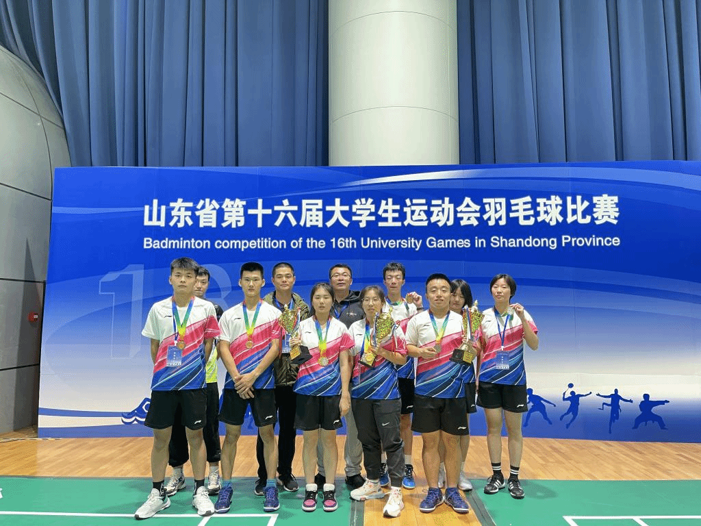 2021年10月23日上午,由山东省教育厅、山东省体育局主办,山东大学承办,山东省学校体育协会协办的第十六届山东省大学生运动会羽毛球比赛在青岛国信体育馆圆满顺利落幕。本次比赛历时一周,吸引了全省高校44支代表队,共400余人参加,其各项数据和规模继续刷新大运会羽毛球比赛历史之最。本次比赛共设立男子团体、女子团体、男子单打、女子单打、男子双打、女子双打、混合双打七个项目。我院羽毛球代表队虽然首次参加该项目比赛,但队员们在赛场上敢于拼搏、不断进取,获得场上得裁判员和各高校师生的高度评价和认可。经过五天紧张激烈的比赛,我院代表队共获得金牌2枚、银牌4枚、铜牌4枚,女子乙组团体总分第3名、男子乙组团体总分第5名的好成绩。