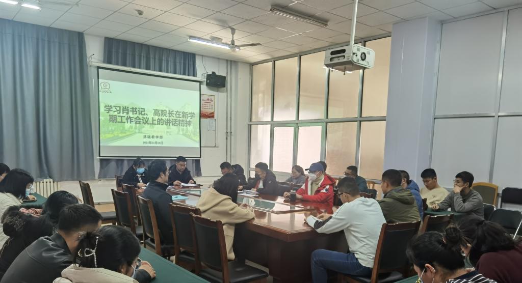 2月16日下午,基础教学部召开会议传达学习贯彻学院新学期工作动员大会精神。基础教学部全体教师参加会议。