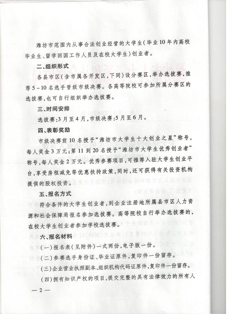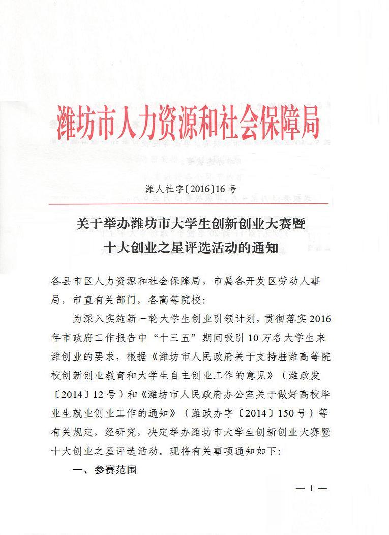 关于举办潍坊市大学生创新创业大赛暨十大创业之星评选活动的通知